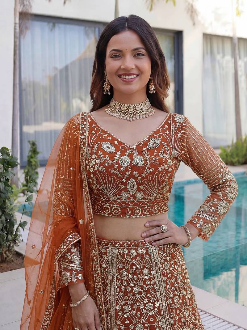 Designer wedding net lehenga choli