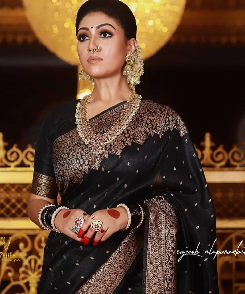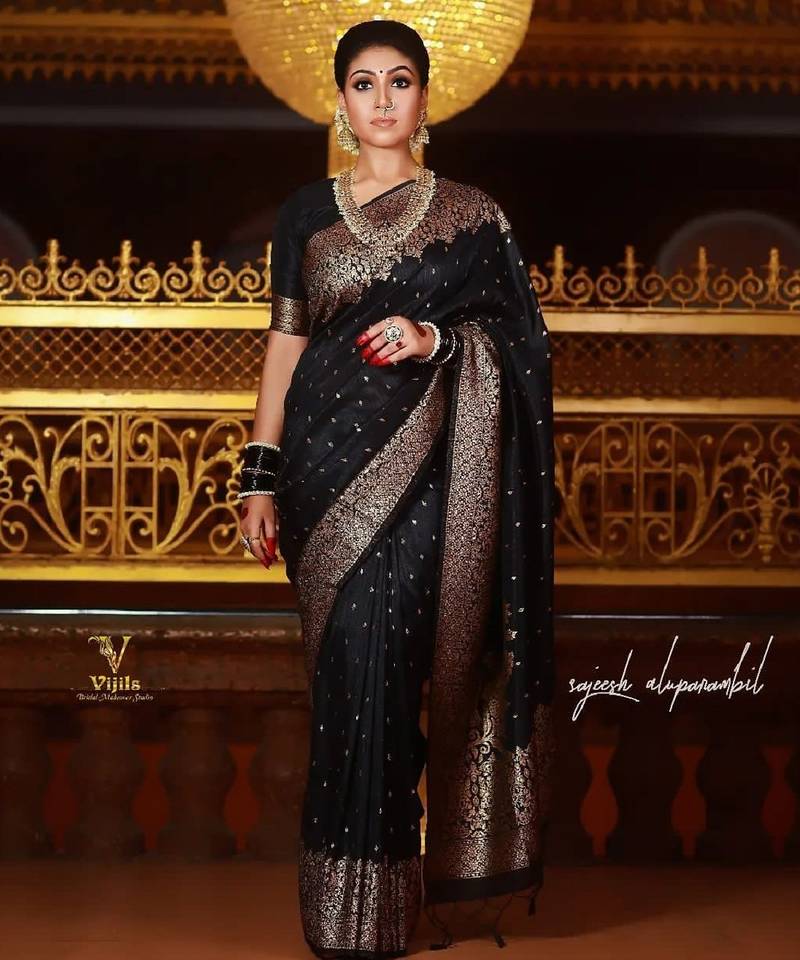 | • | Saree | : | Color- Black / Fabric- Silk Blend |