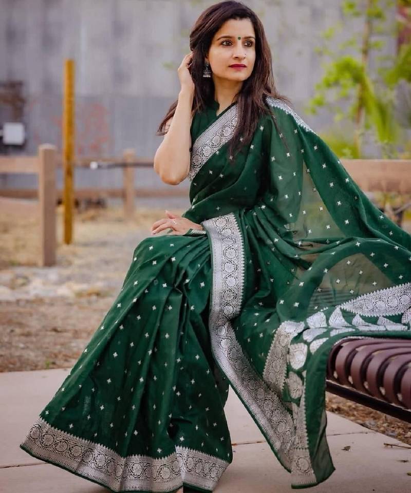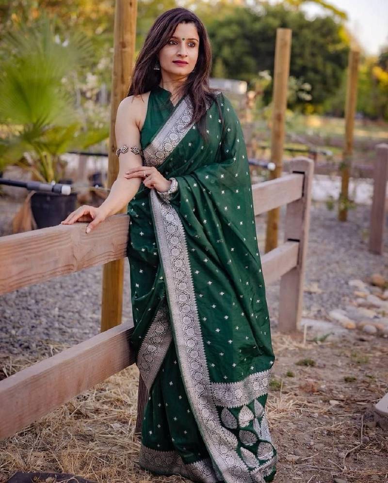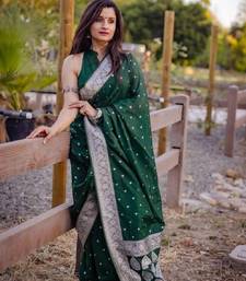 Green soft silk blend banarasi jacuard work designer party wear saree with unstitched blouse piece