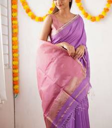 Lavender pink soft linen blend banarasi jacuard work designer party wear saree with unstitched blouse piece