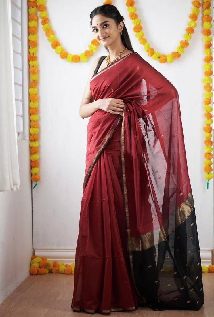 | • | Saree | : | Color- Maroon / Fabric- Faux Linen |