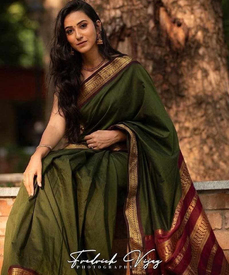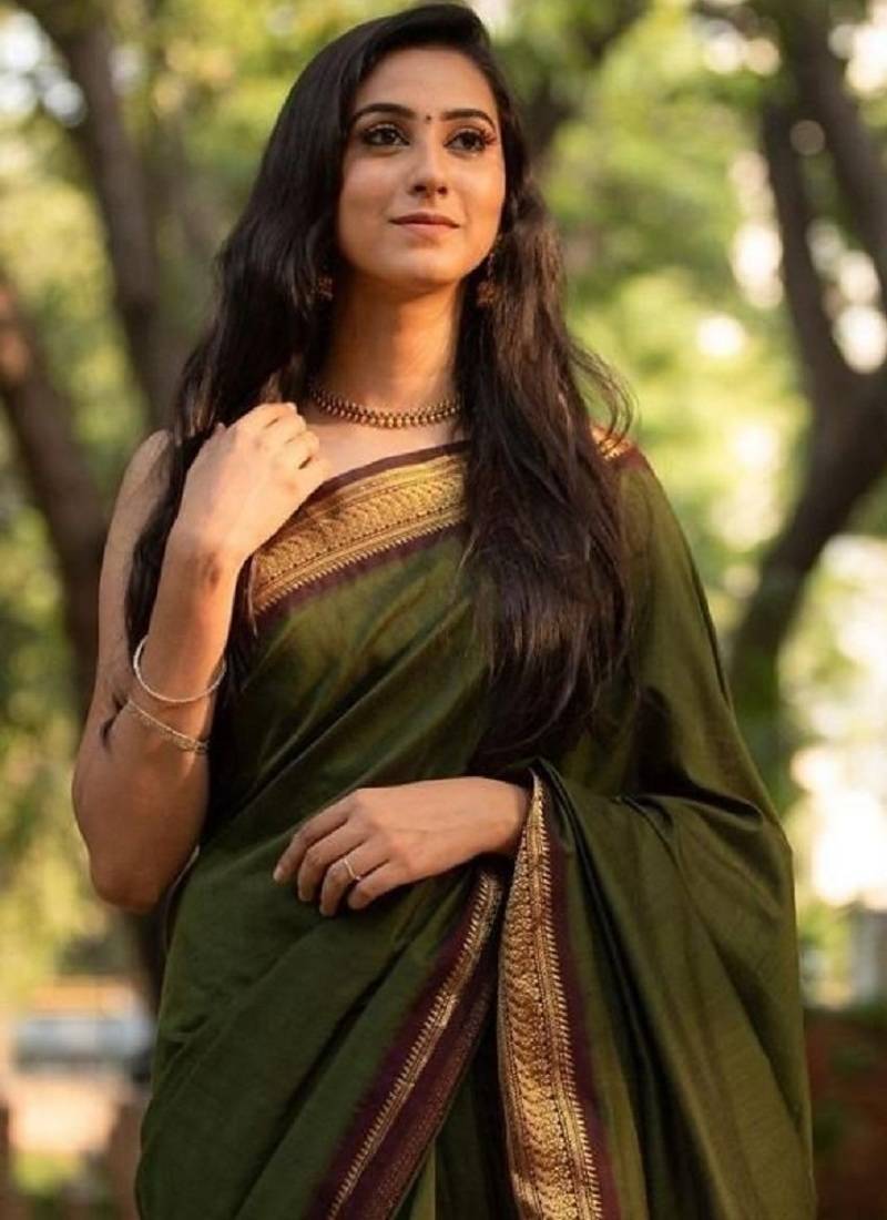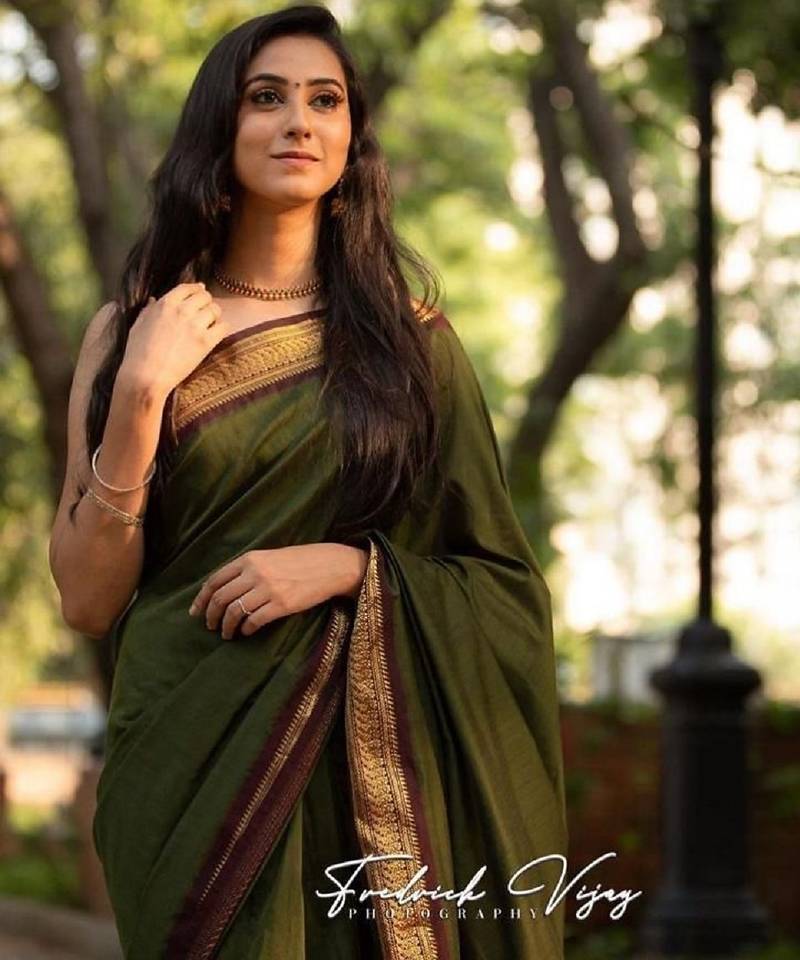 | • | Saree | : | Color- Mehendi / Fabric- Silk Blend |