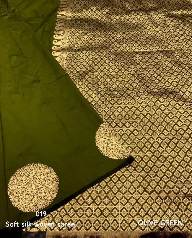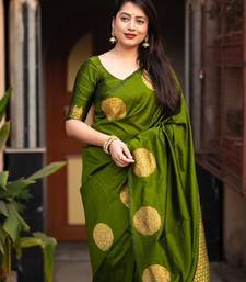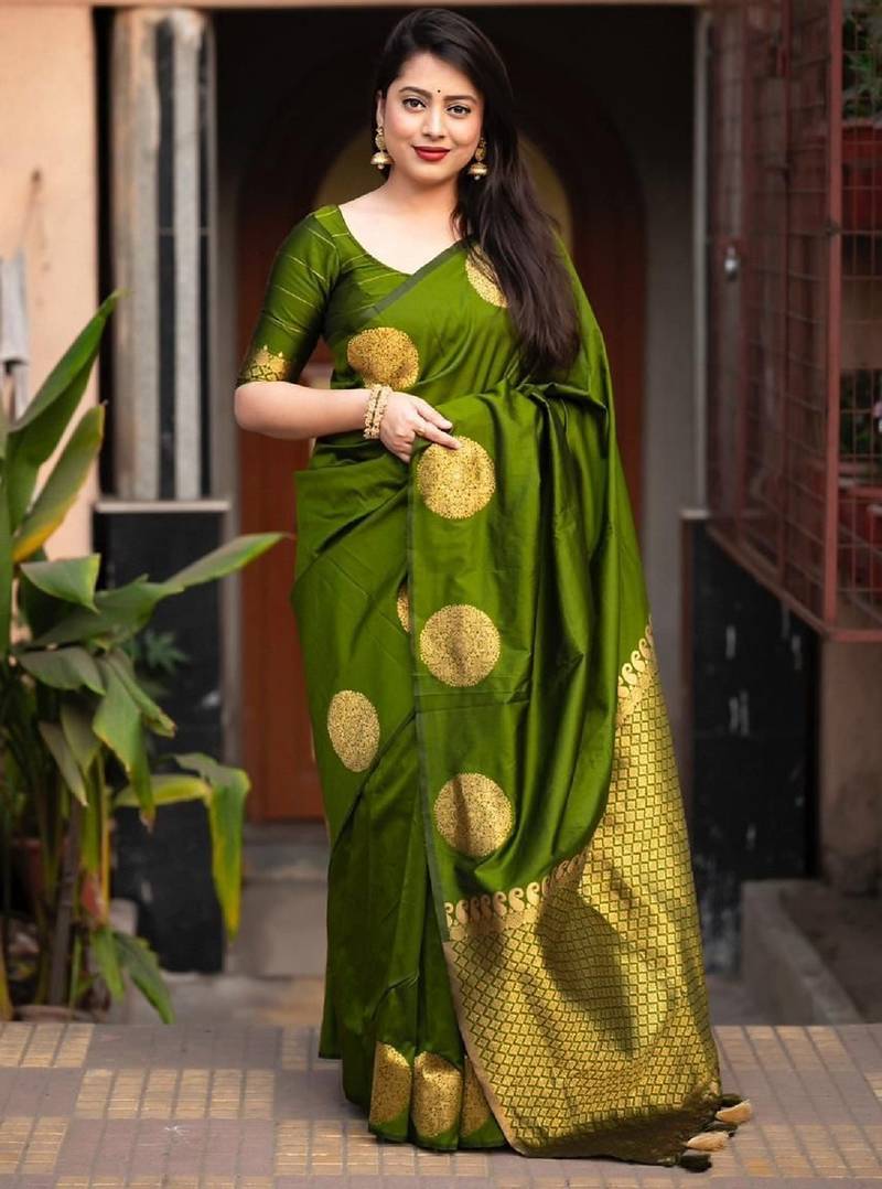 Parrot soft silk blend banarasi jacuard work designer party wear saree with unstitched blouse piece