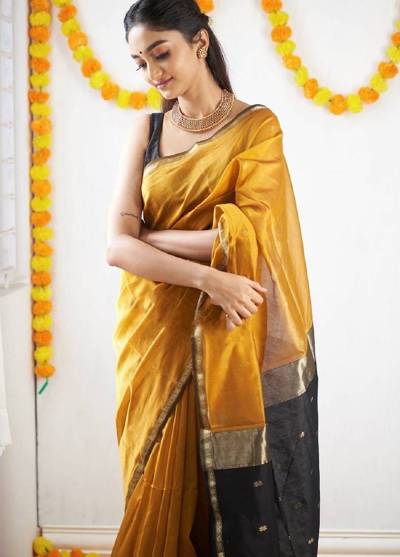 | Product Name | Yellow Black Soft Linen Blend Banarasi Jacuard Work Designer Party Wear Saree With Unstitched Blouse Piece | |