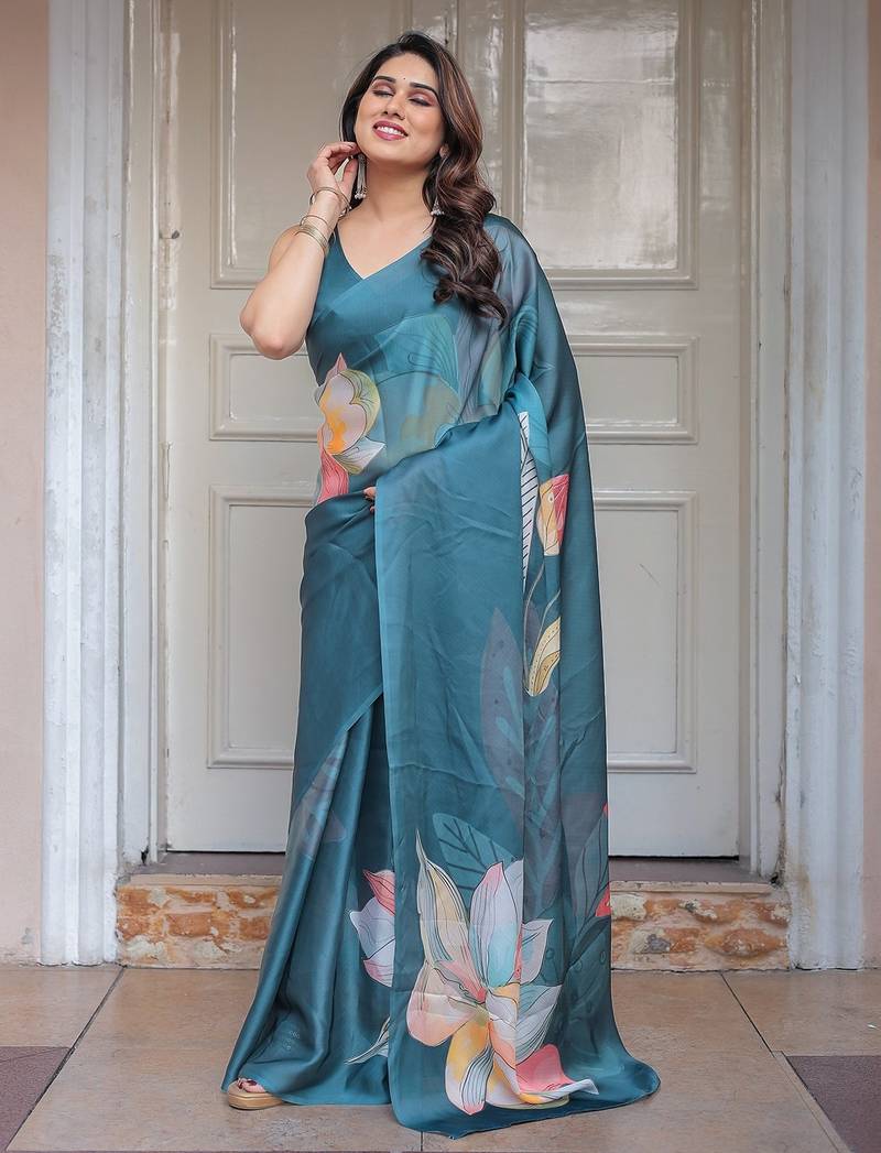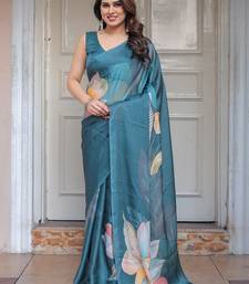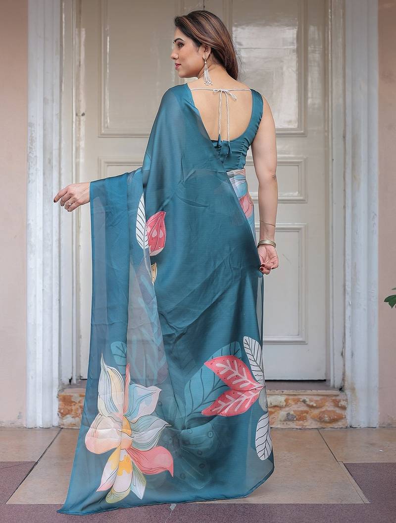Lightweight satin georgette floral printed saree for women