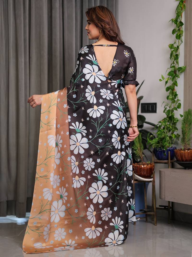 Stylish floral pattern satin georgette saree for women