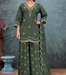 Green roman silk palazzo suit with embroidery & sequin work stitched