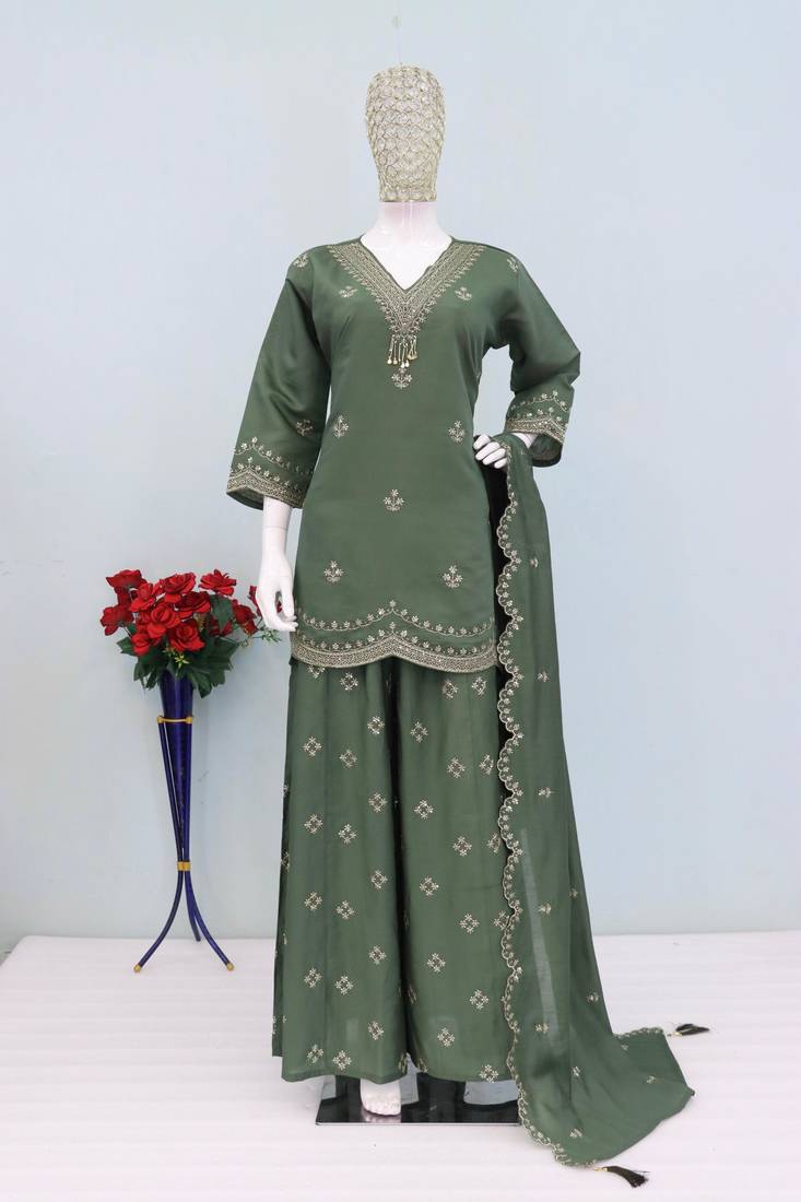 | Product Name | Green Roman Silk Palazzo Suit With Embroidery & Sequin Work | |