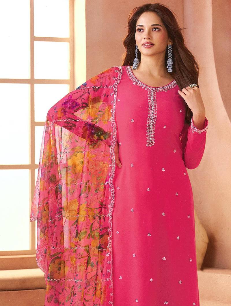| Product Name | Magenta Chiffon Suit With Digiral Printed & Beats Work | |