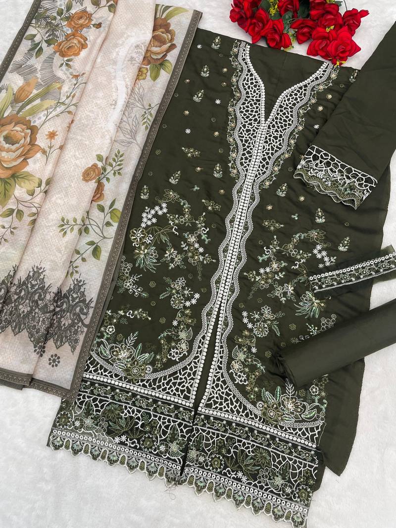 | Product Name | Mehendi Slub Cotton Suit With Embroidered Mutlri Work | |