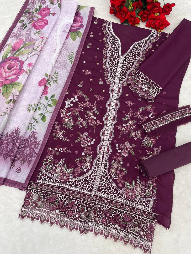 | Product Name | Purple Slub Cotton Semi Stitched Suit With Embroidered Mutlri Work | |