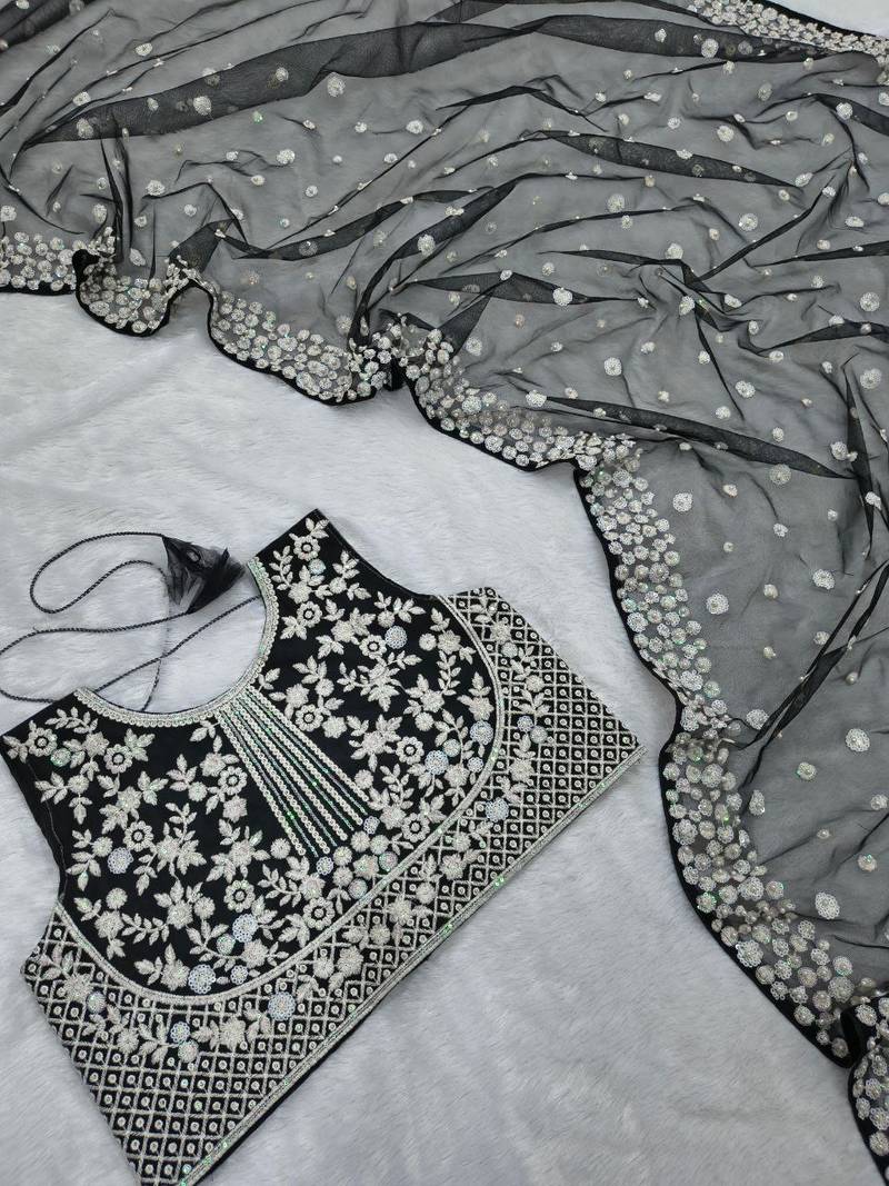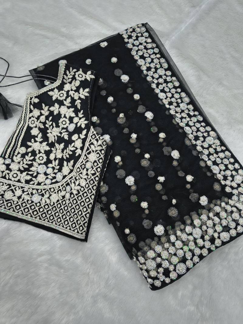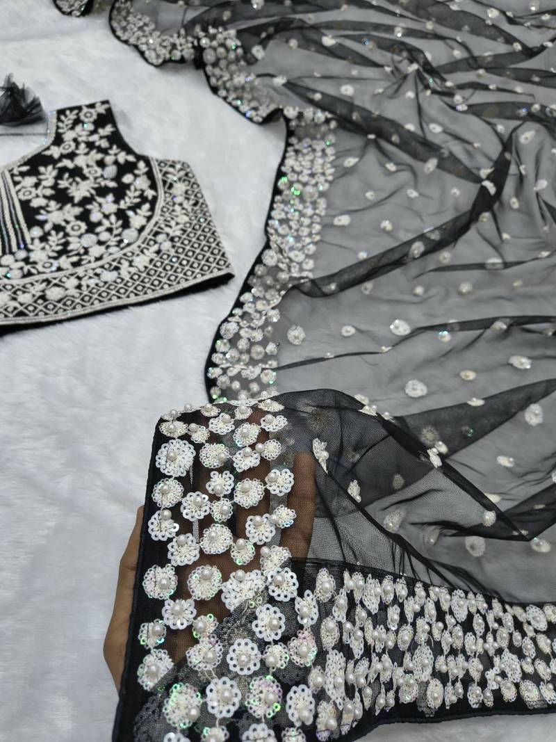| Product Name | Black Color Embroidery And Sequins Work With Full Hand Pearl Work Butterfly Soft Net Saree | |