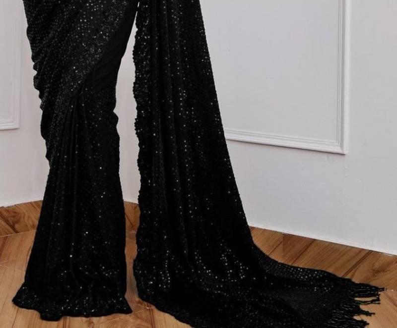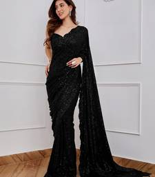 Black color sequence embrodery work georgette saree