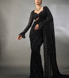 Black color sequins & multy embroidery work georgette saree