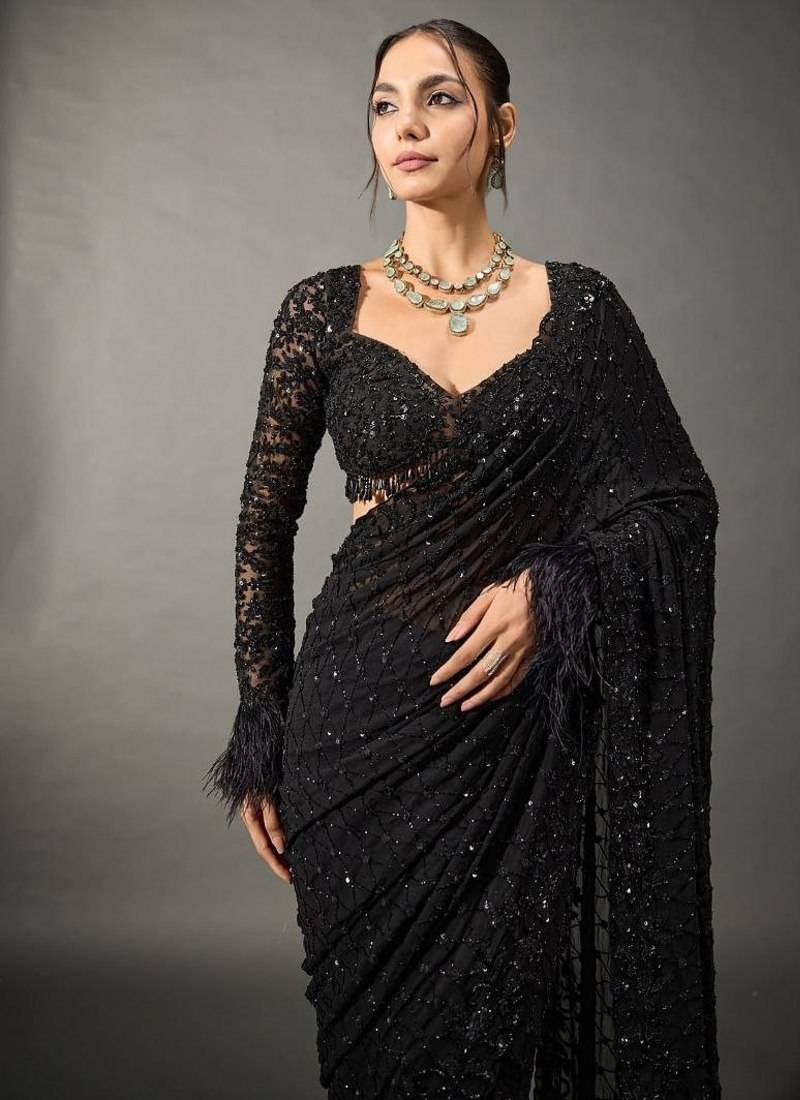 | Product Name | Black Color Sequins & Multy Embroidery Work Georgette Saree | |