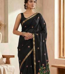 Black color zari weaving silk saree