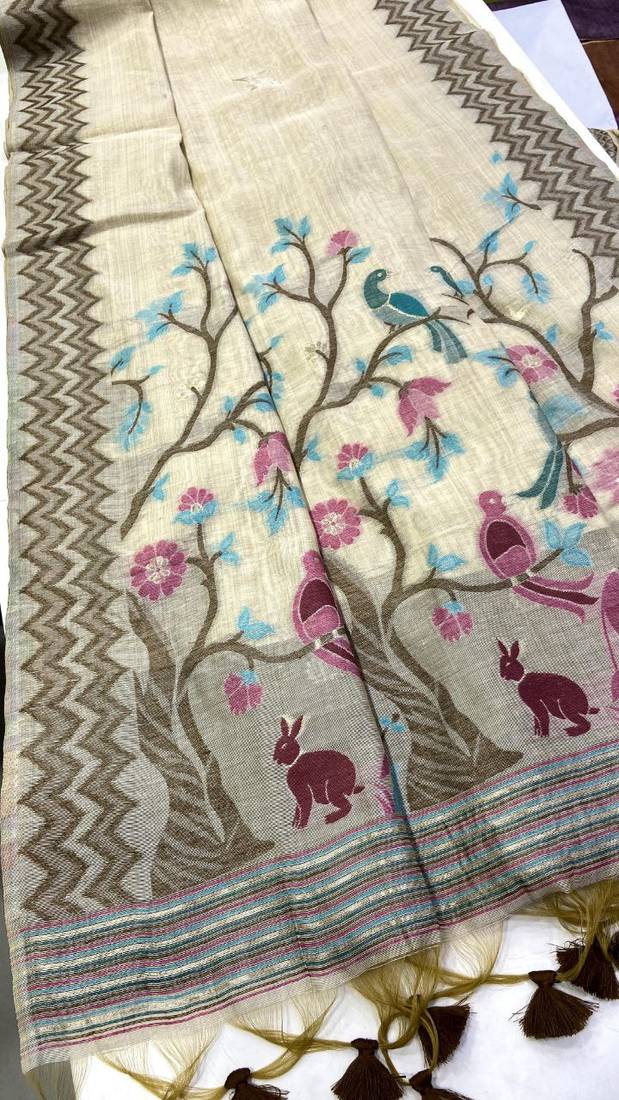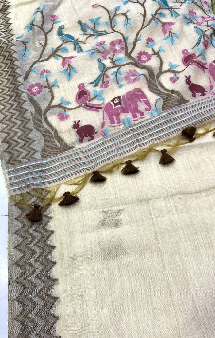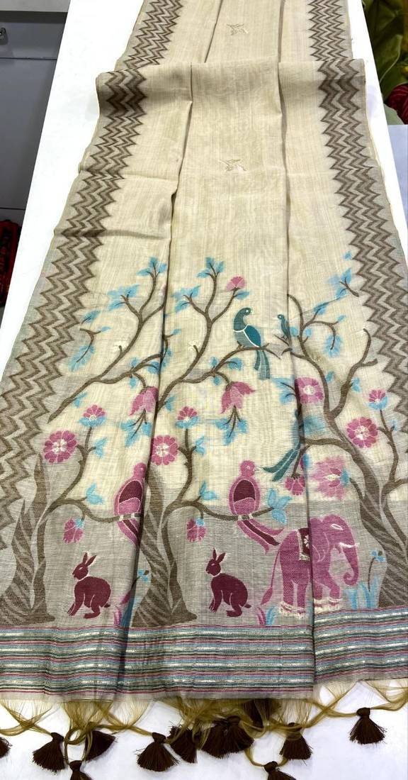 | Product Name | Cream Color Folk Style Narrative Weave Cotton Saree | |