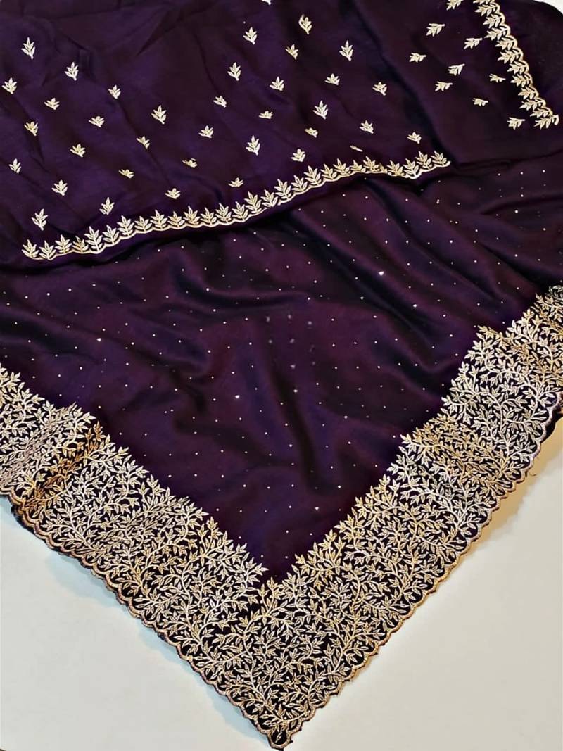 | Product Name | Dark Lavendar Color Silk Fabric Zari Work And Stone Work Saree | |