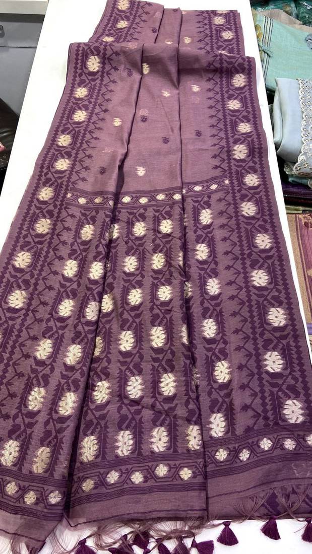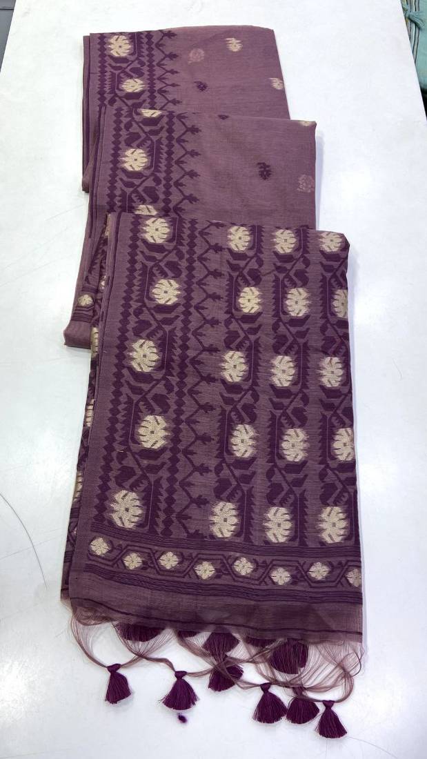 | Product Name | Dark Lavender Color Zari Weaving Butti Work Cotton Saree | |