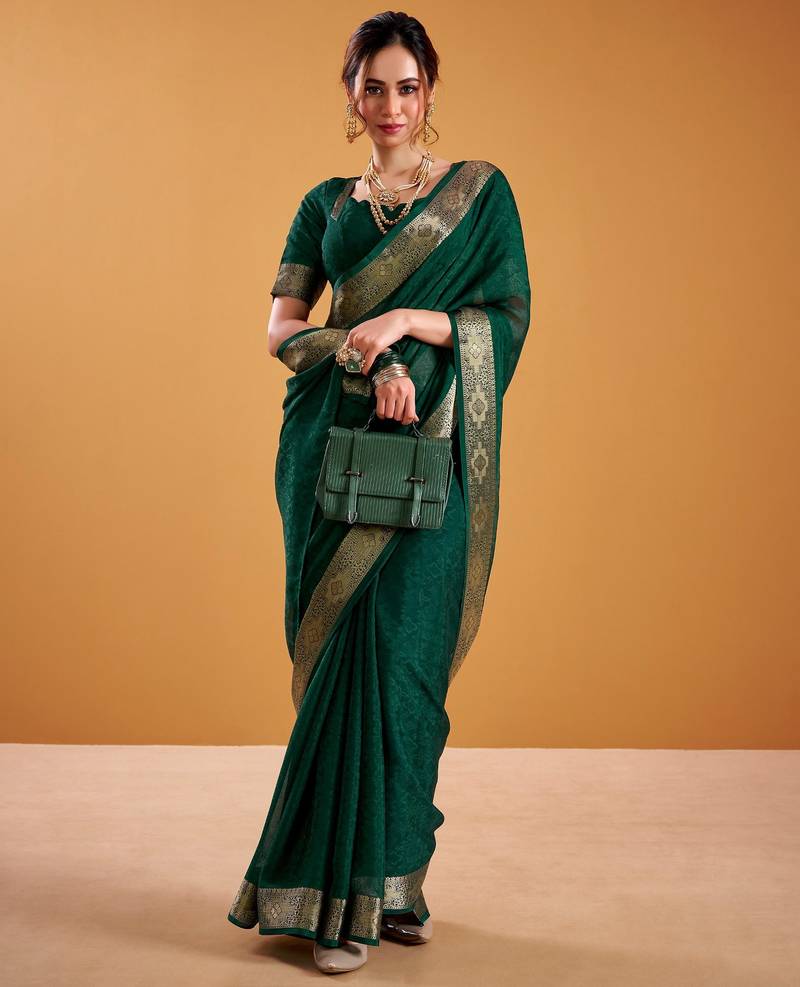 | Product Name | Green Color Zari Weaving Organza Saree Work | |