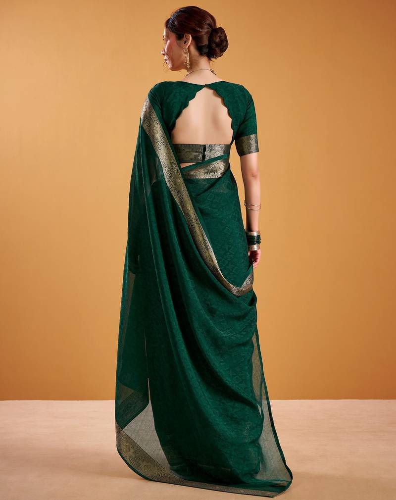 Green color zari weaving organza saree work