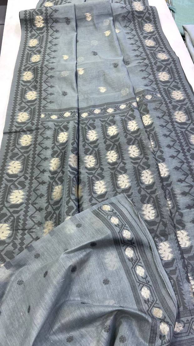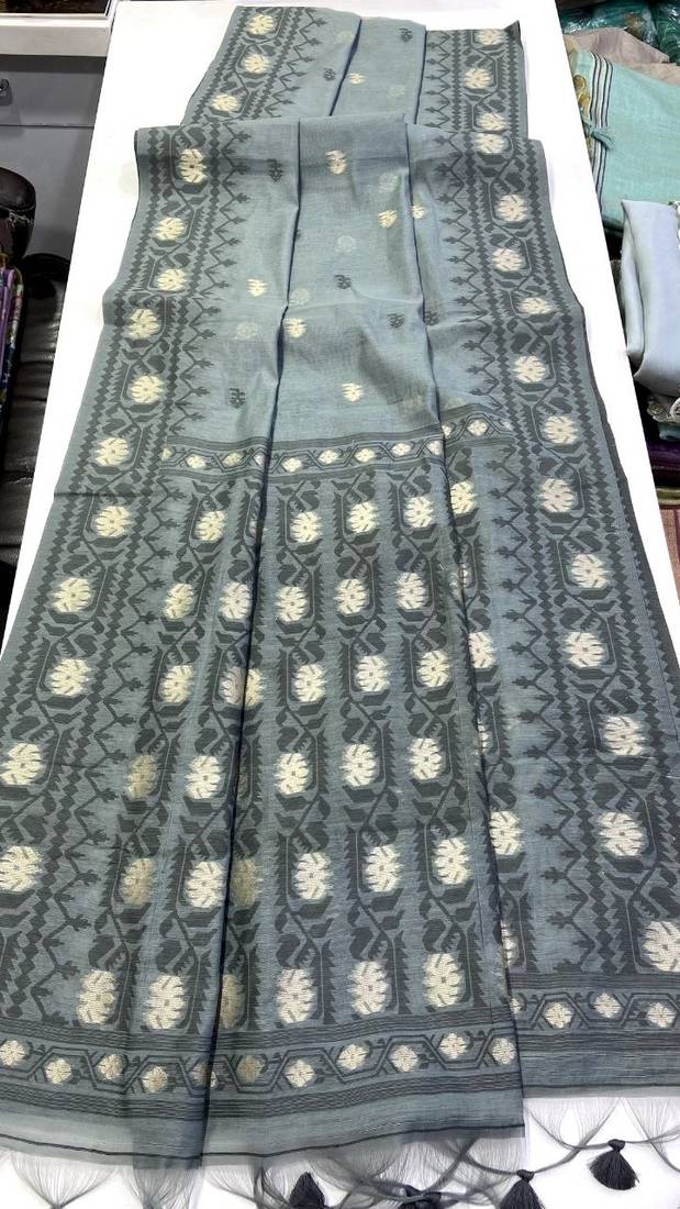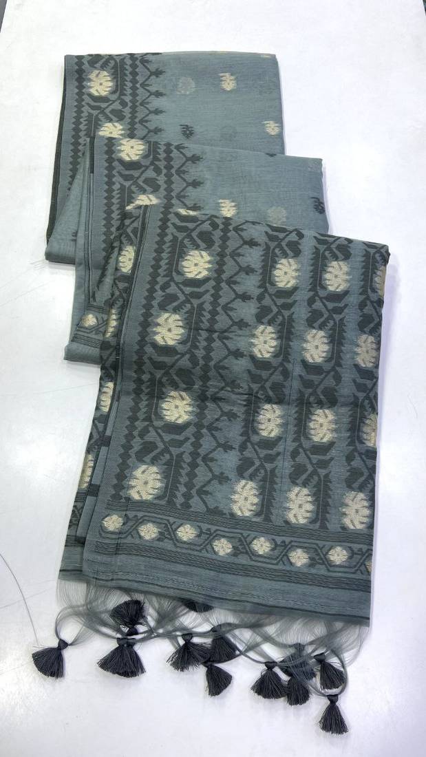 | Product Name | Grey Color Zari Weaving Butti Work Cotton Saree | |