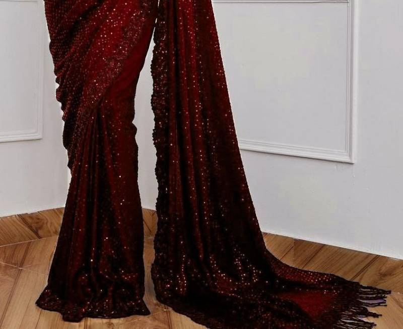 Maroon color sequence embrodery work georgette saree
