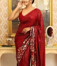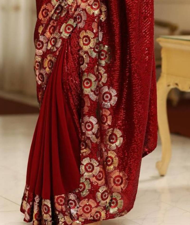 Maroon color sequins embroidery work georgette saree