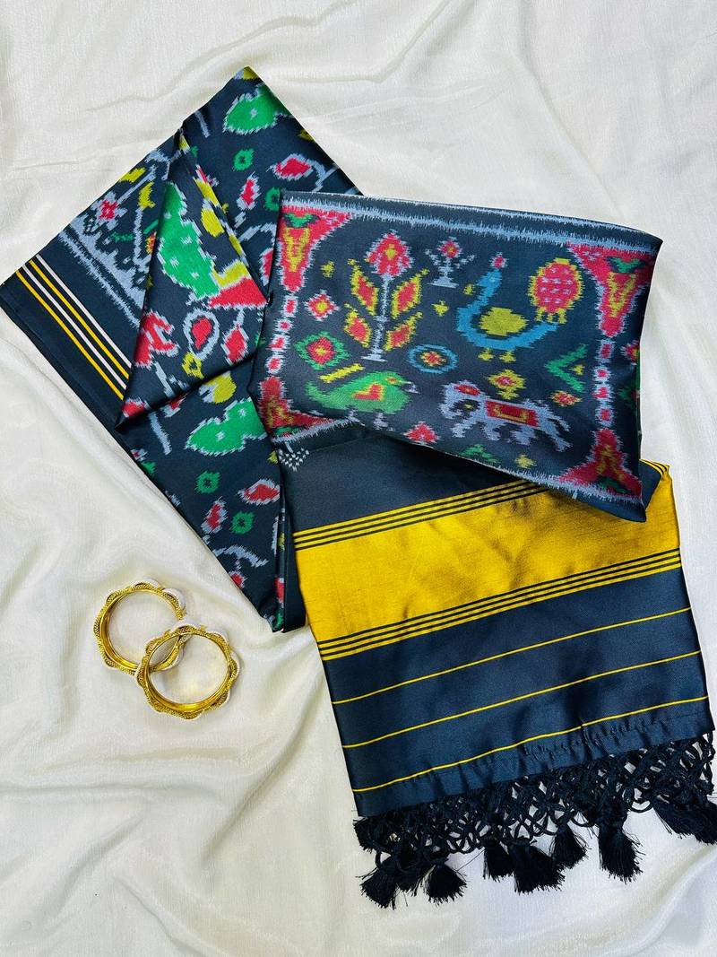 | Product Description | Experience Sheer Elegance With Our Premium Soft Pure Patola Silk Saree, Adorned With All Over Patola Style Double Pichwai Print .