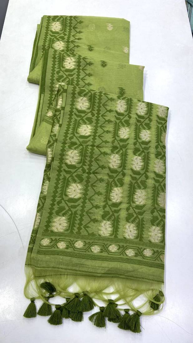 | Product Name | Parrot Green Color Zari Weaving Butti Work Cotton Saree | |