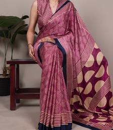 Pink color fancy printed dull satin saree