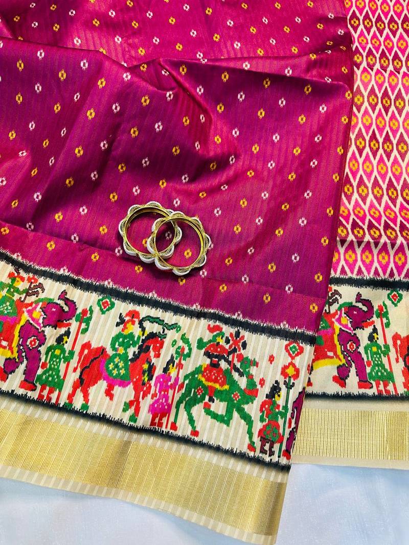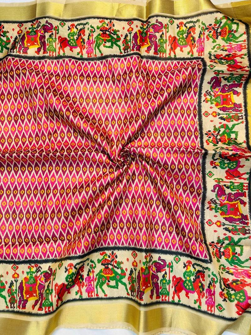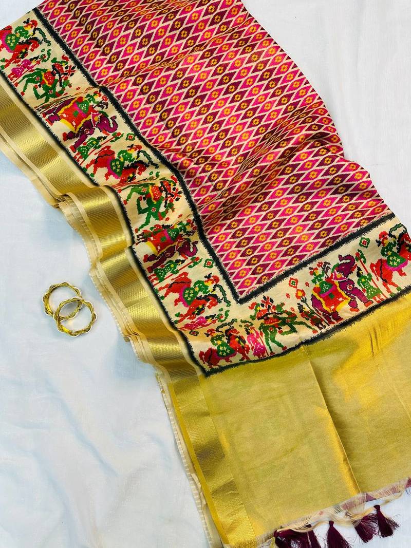 | Product Name | Pink Color Printed Golden Zari Border And Zari Pallu Silk Saree | |