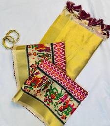 | Product Description | Elegant Tussar Silk Saree With A Zari Feel, Featuring A Beautiful Digital Print Design. The Golden Zari Border And Zari Pallu Add A Touch Of Luxury, Complemented By Stylish Tassels |