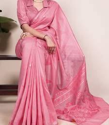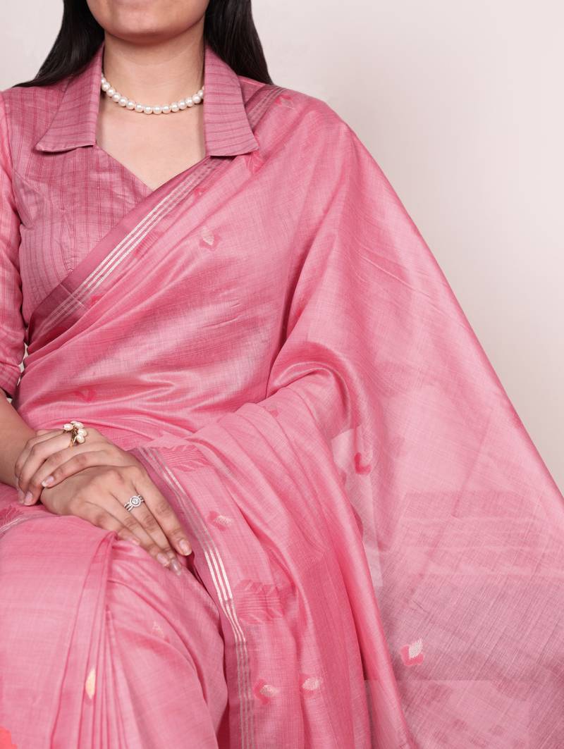 Pink color woven with zari weaving cotton silk saree