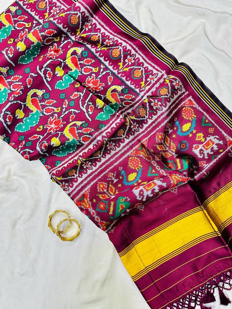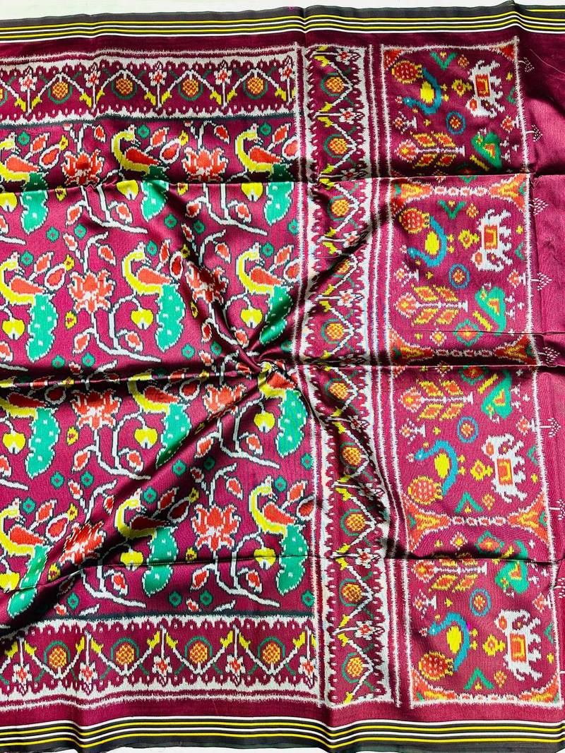 | Product Description | Experience Sheer Elegance With Our Premium Soft Pure Patola Silk Saree, Adorned With All Over Patola Style Double Pichwai Print .