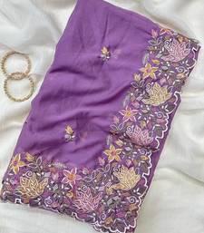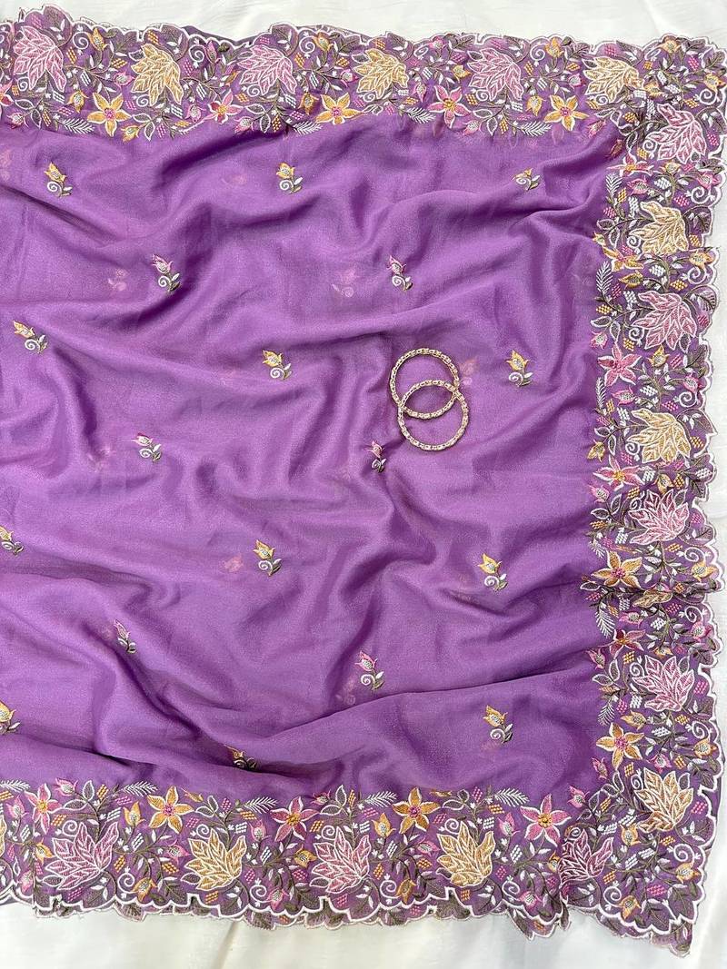 Purple color multi thread embroidery cut work georgette saree