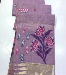 Purple color woven floral motifs silk saree