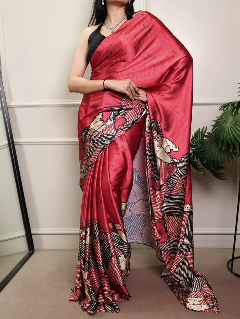 | Product Name | Red Color Printed Satin Silk Saree | |