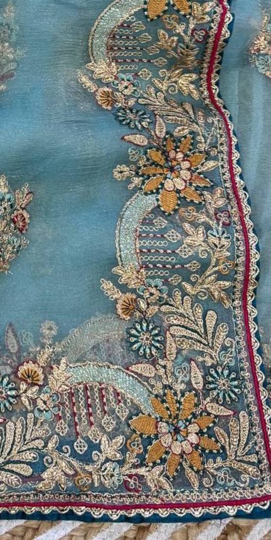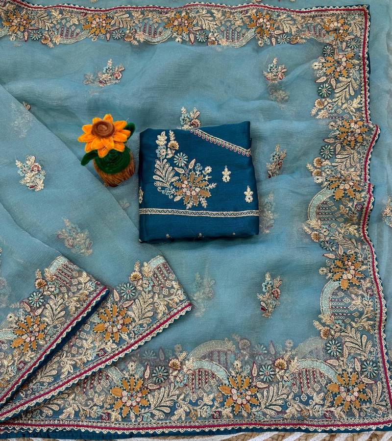 Product Name Sky Blue Color Multi Thread And Zari Embroidery Work Silk Saree