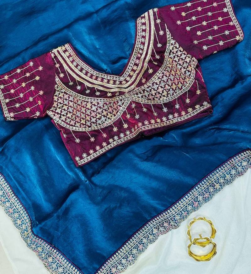 | Product Name | Teal Color Embroidery Fancy Lace Border Satin Saree | |