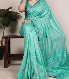 Teal color woven with zari weaving cotton silk saree