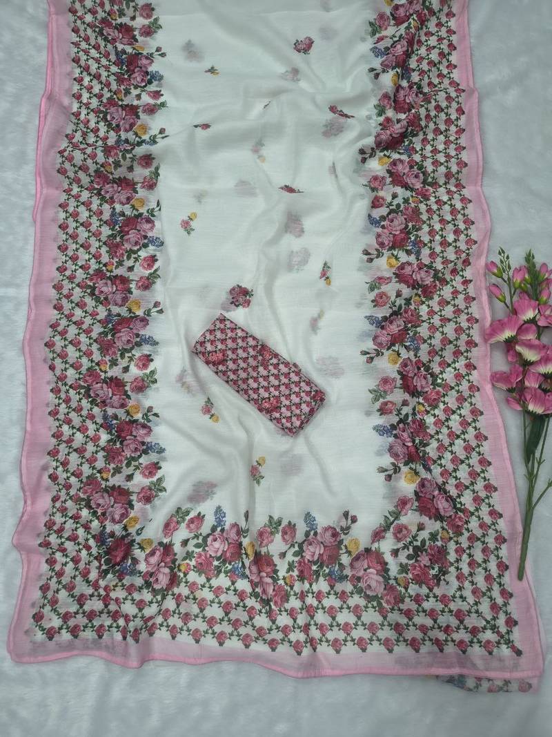 | Product Description | Saree :Premium Linen Cotton Embellished With Beautiful Digital Print With Piping Work