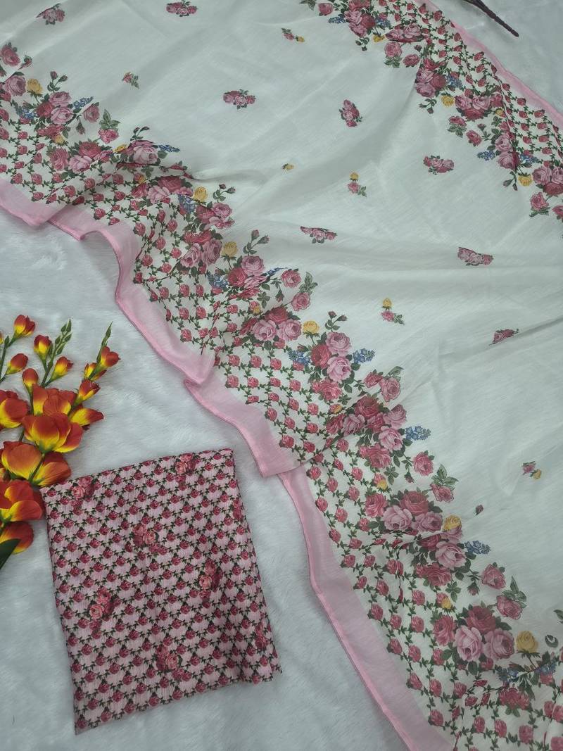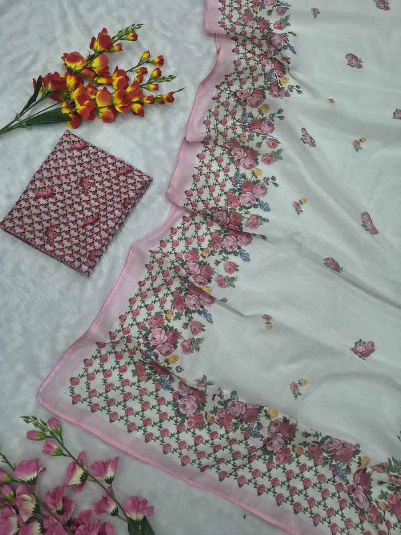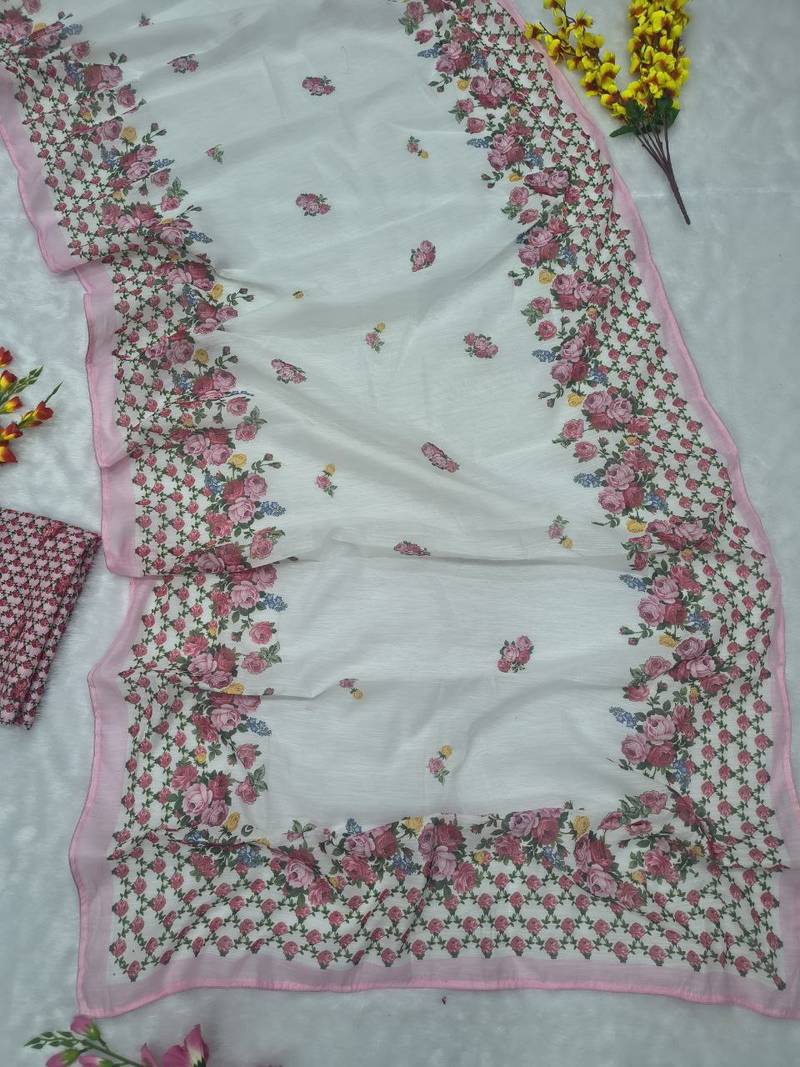 | Product Name | White Color Digital Print With Piping Work Cotton Saree | |