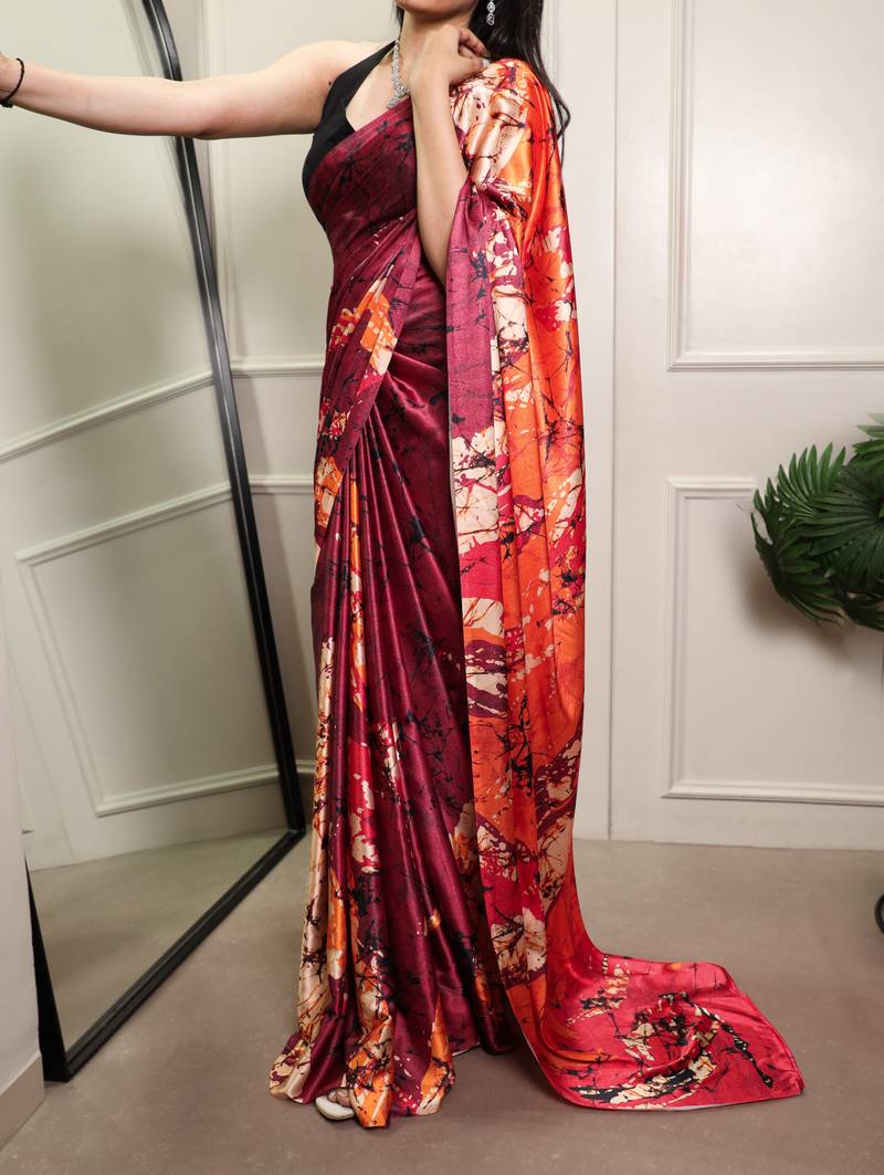 | Product Name | Wine Color Printed Satin Silk Saree | |