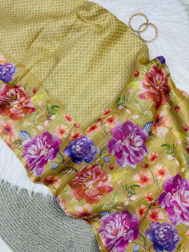 | Product Name | Yellow Color Digital Floral Print Tissue Saree | |