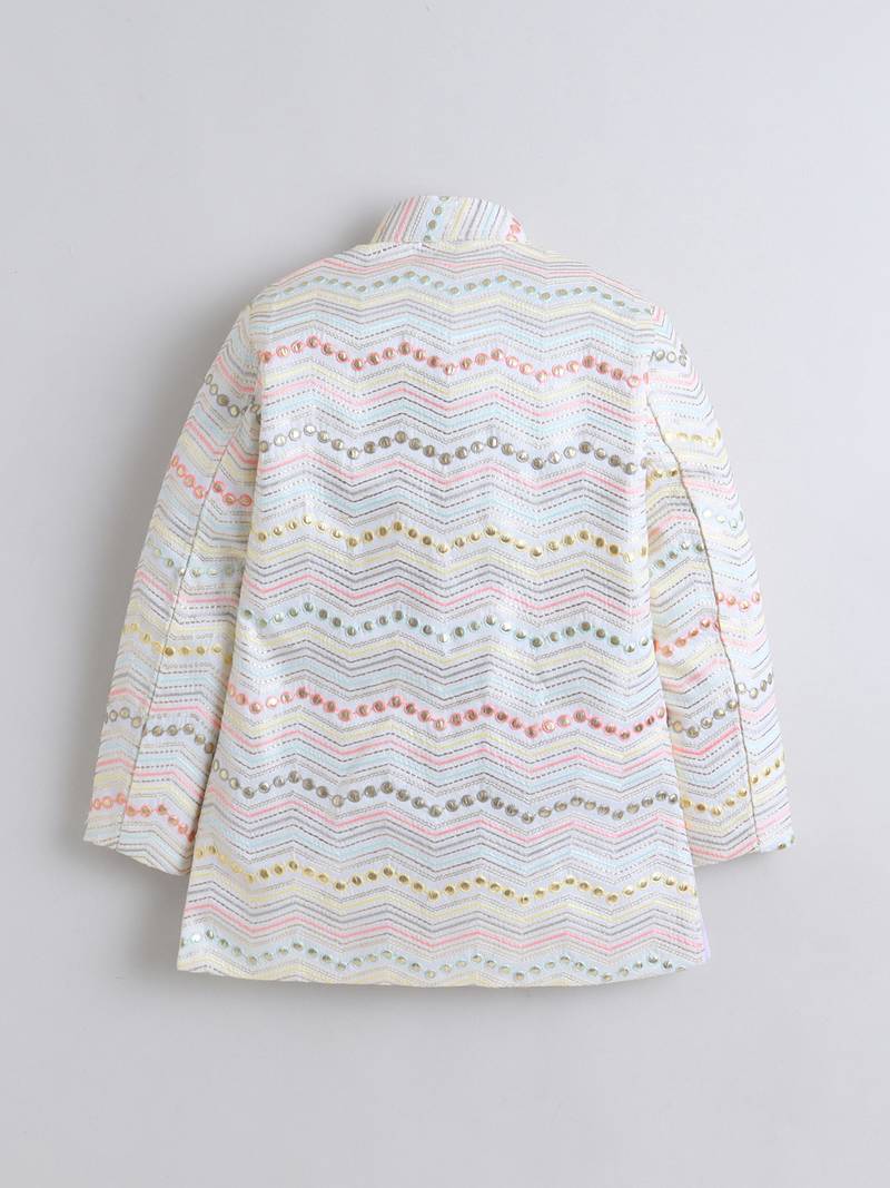 | Product Description | Bring A Touch Of Elegance To Your Boy’s Festive Wardrobe With This Sherwani And Trouser Set. The Sherwani Features Chevron Zigzag Embroidery Enhanced With Delicate Sequins For A Rich Traditional Look. Designed With A Mandarin Collar, Straight Hem, And Side Slits For A Smart And Comfortable Fit. Paired With Matching Trousers, This Outfit Is Perfect For Weddings, Celebrations, And Special Occasions. |