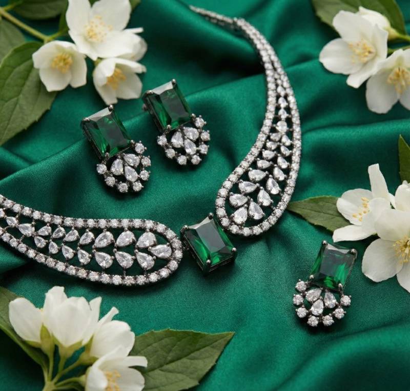 | Product Name | Emerald Green Cz Diamond Necklace Set For Women | American Diamond Party Wear Jewelry | |