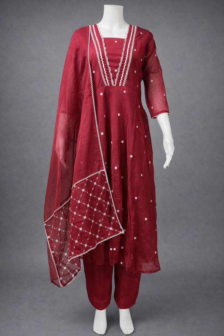 | Product Name | Label Divine Attire Maroon Organza Lace Work Kurta Pant Set With Dupatta | |