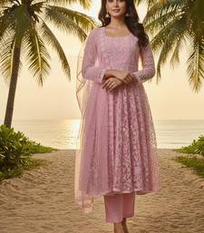 Label divine attire women dusty rose pink lucknowi chikankari net kurta pant set with dupatta