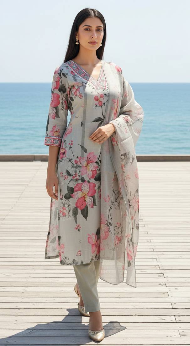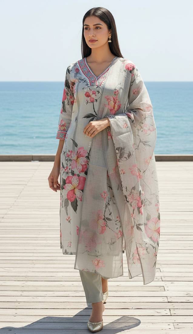 | • | Dupatta | : | Color- Off White / Fabric- Linen |
